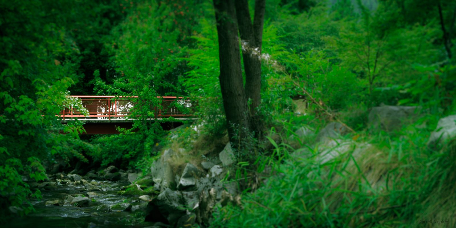It splashed over rocks into a creek and then ran under a bridge and out into a wide, deep, slow moving river that shimmered with hues of green and blue.