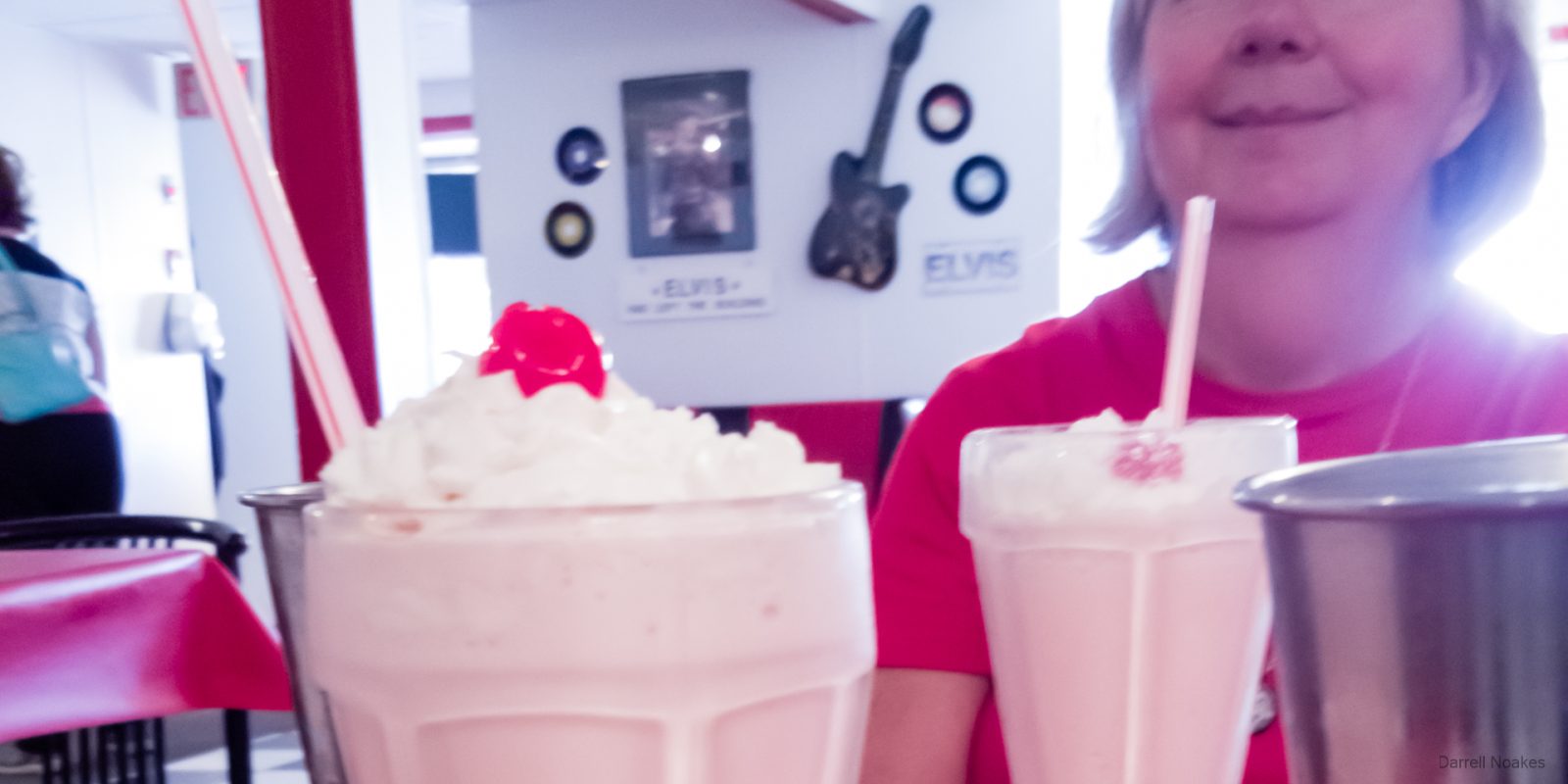 We each ordered strawberry. While waiting, we strolled around the restaurant, looking at the memorabilia. Guests at another table reminded us to be sure to walk to the back to see the soda fountain mannequin.