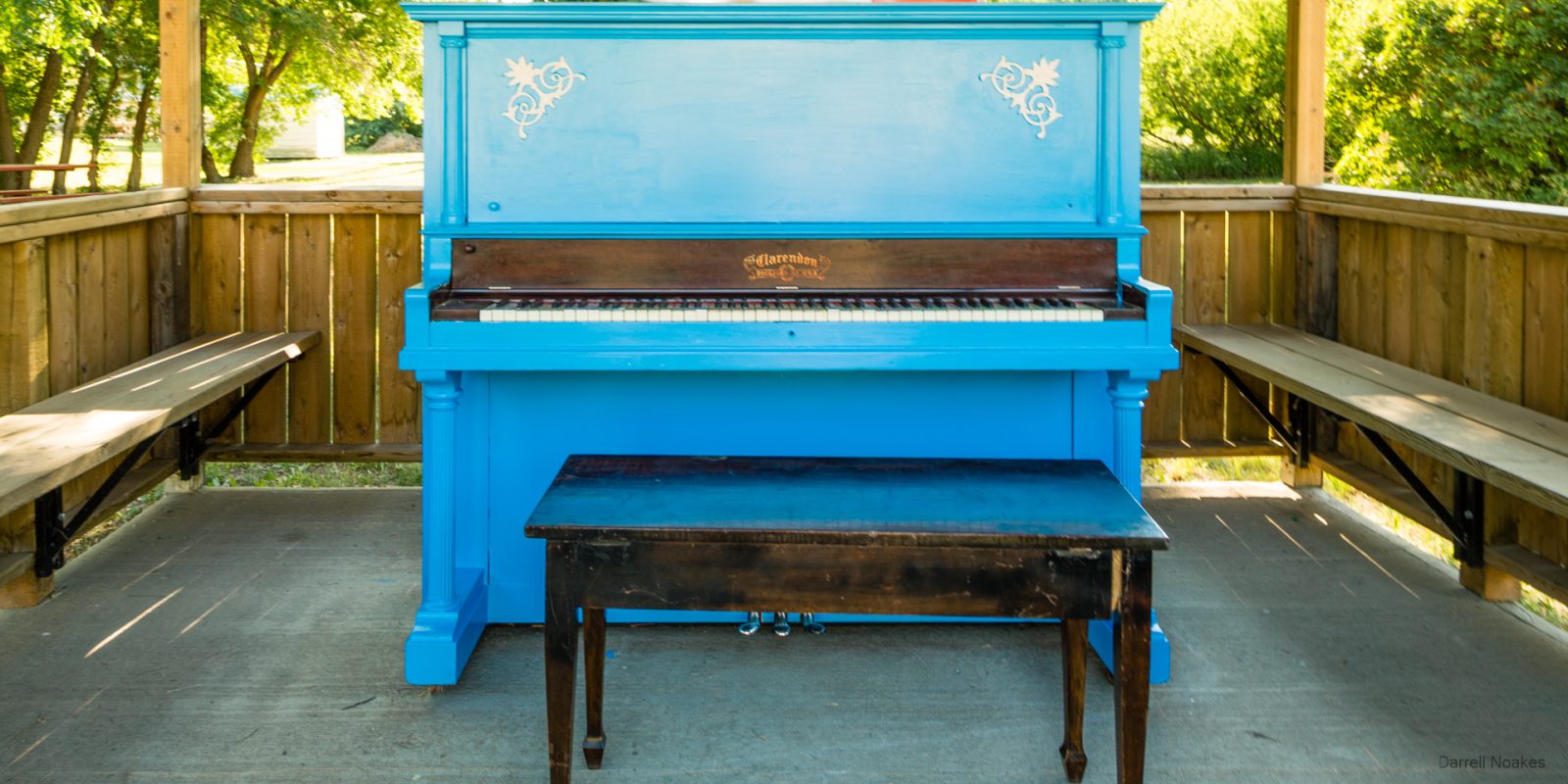 When we got there on Canada Day this year, there was a bright, shiny blue piano in the gazebo.