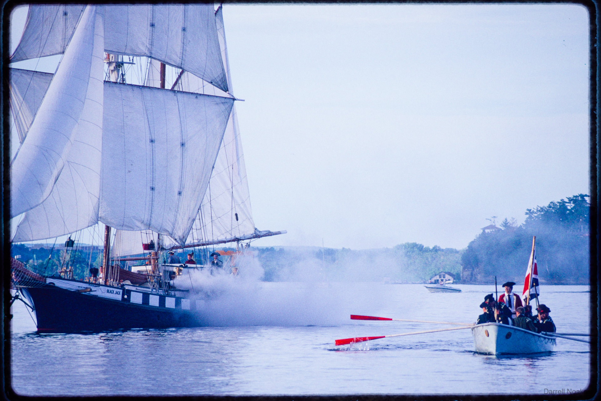 In 1988, some 700 American and Canadian re-enactment enthusiasts gathered at Major’s Hill Park on Saturday, July 2 and at Jacques Cartier Park on Sunday, July 3, attracting about 50,000 spectators. The “battle” at Jacques Cartier Park staged British and Loyalist troops attacking the American camp from water and from land.