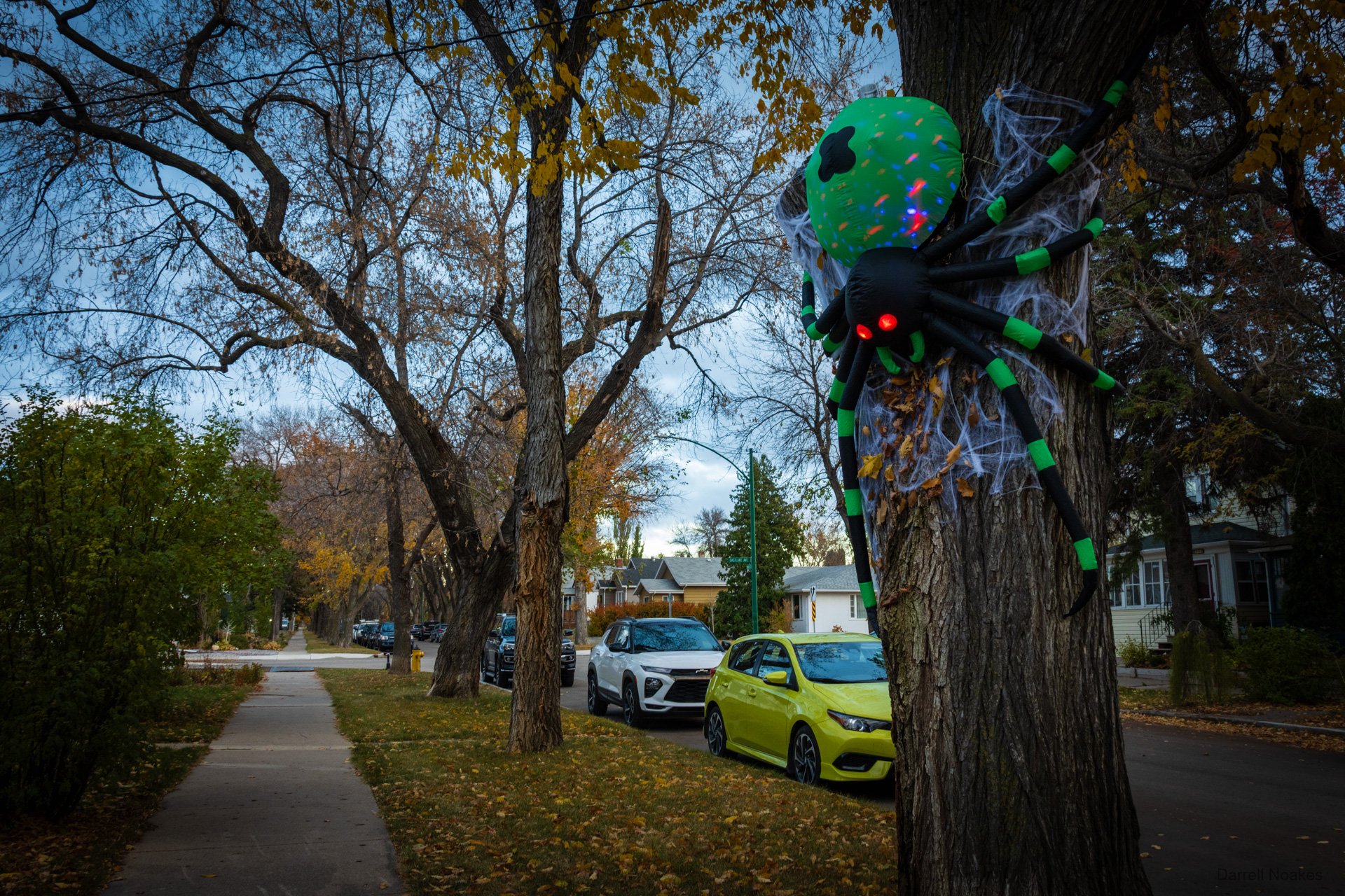 There’s a chill in the air. Clouds scud overhead, yet the street lies still and quiet, as if holding its breath in apprehension of colder, darker nights to come.