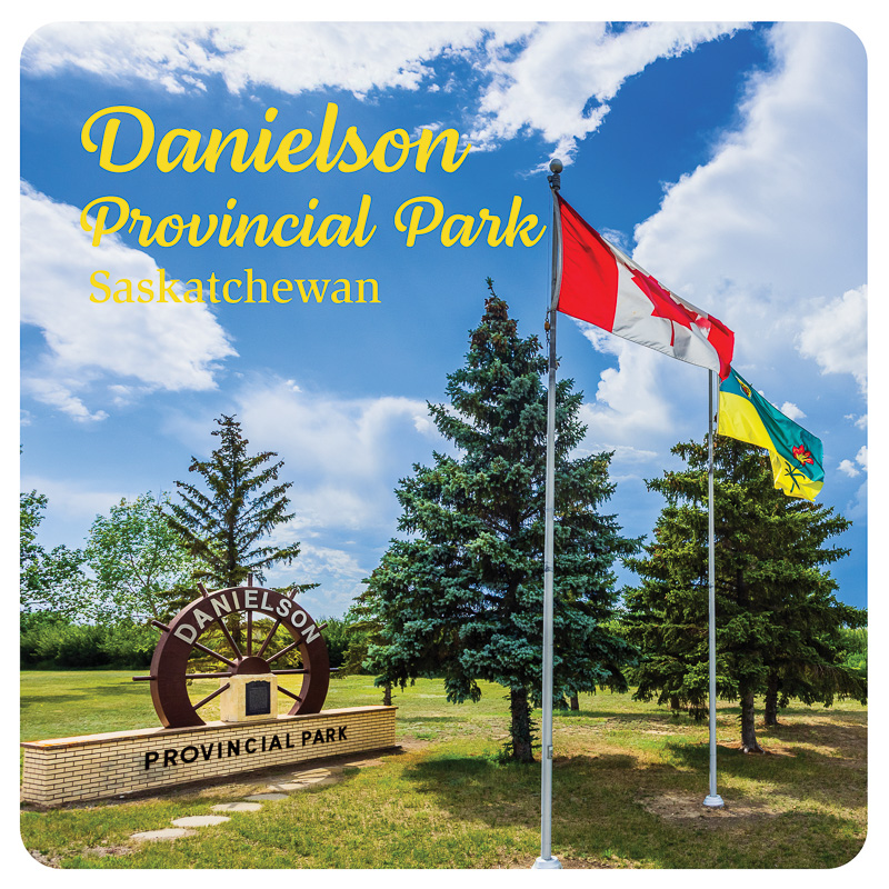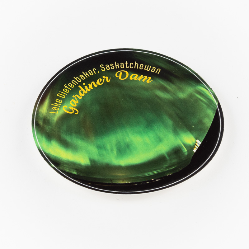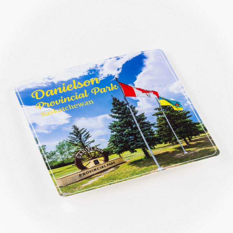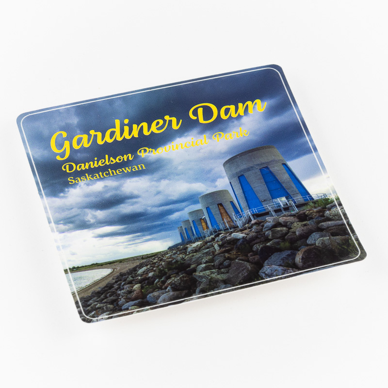 Danielson Provincial Park, Saskatchewan. Water-resistant, glossy polypropylene sticker, Gardiner Dam, Lake Diefenbaker, Saskatchewan. Water-resistant, glossy polypropylene sticker, 3″ (76.2 mm) square.