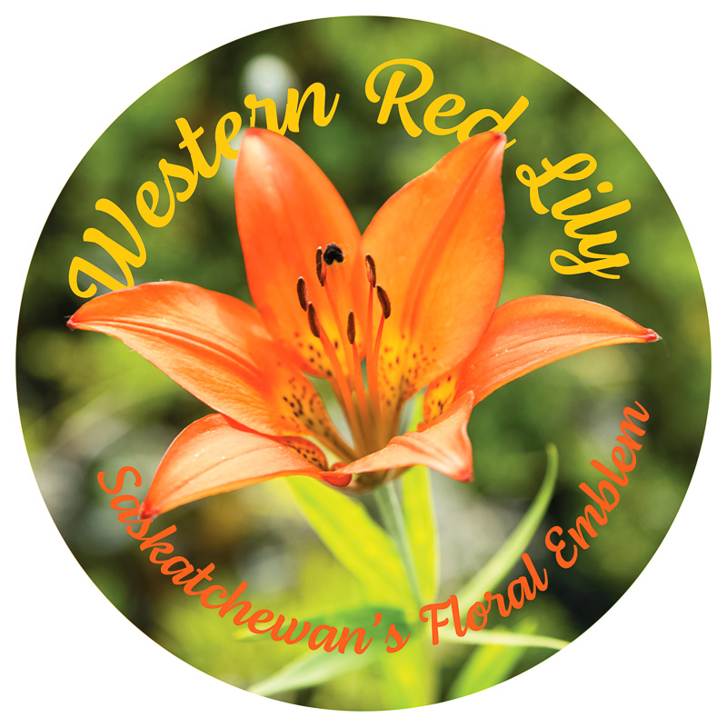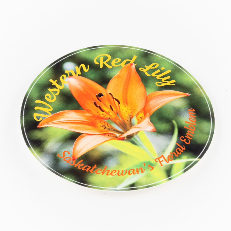 Western Red Lily, Saskatchewan’s Floral Emblem. Water-resistant, glossy polypropylene sticker, 3″ (76.2 mm) round.
